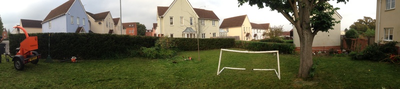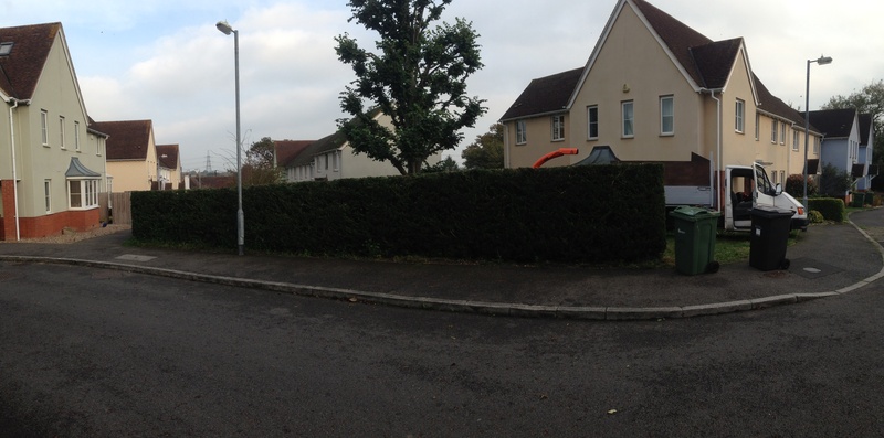 hedge row reduced and sides trimmed